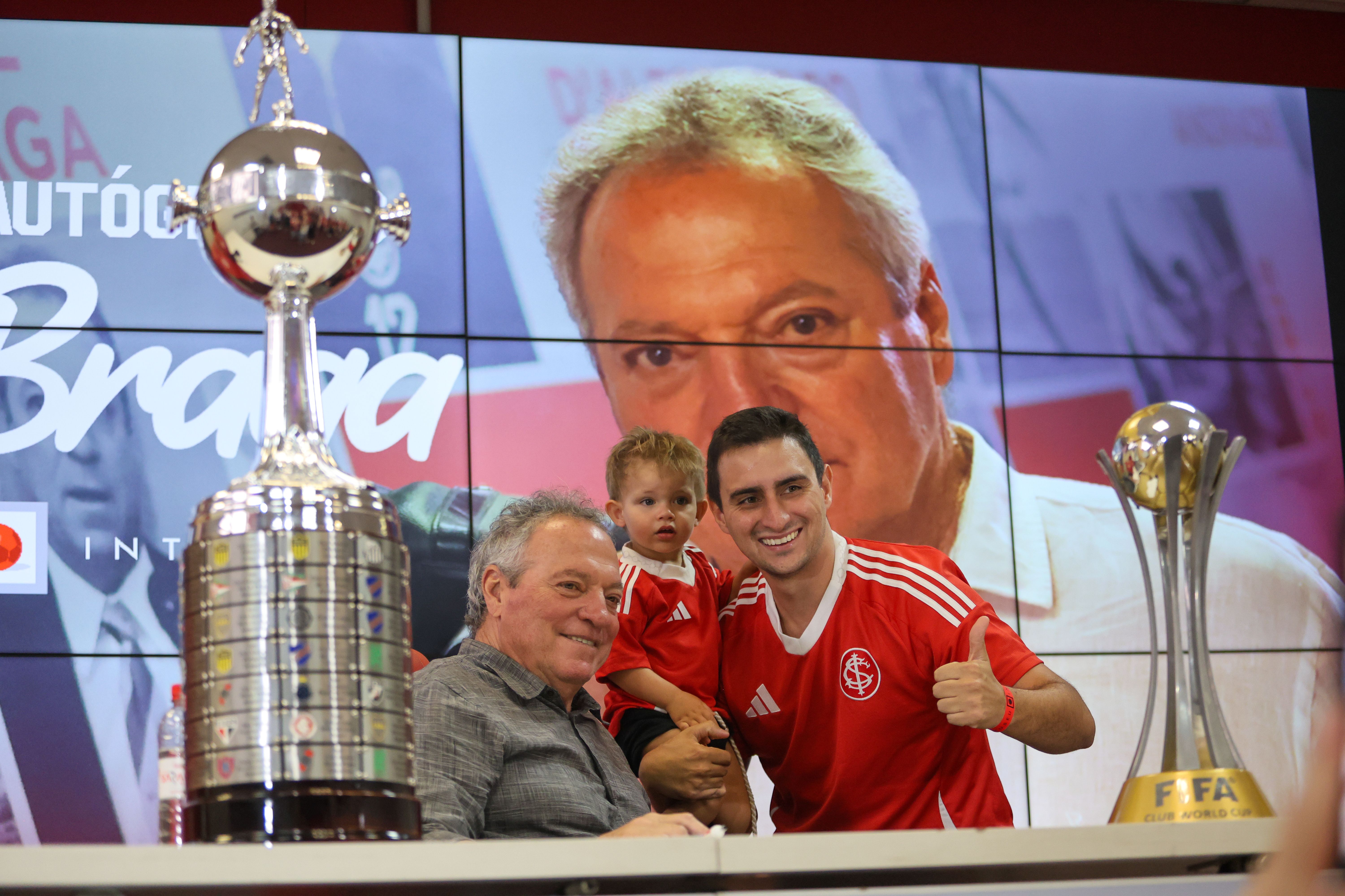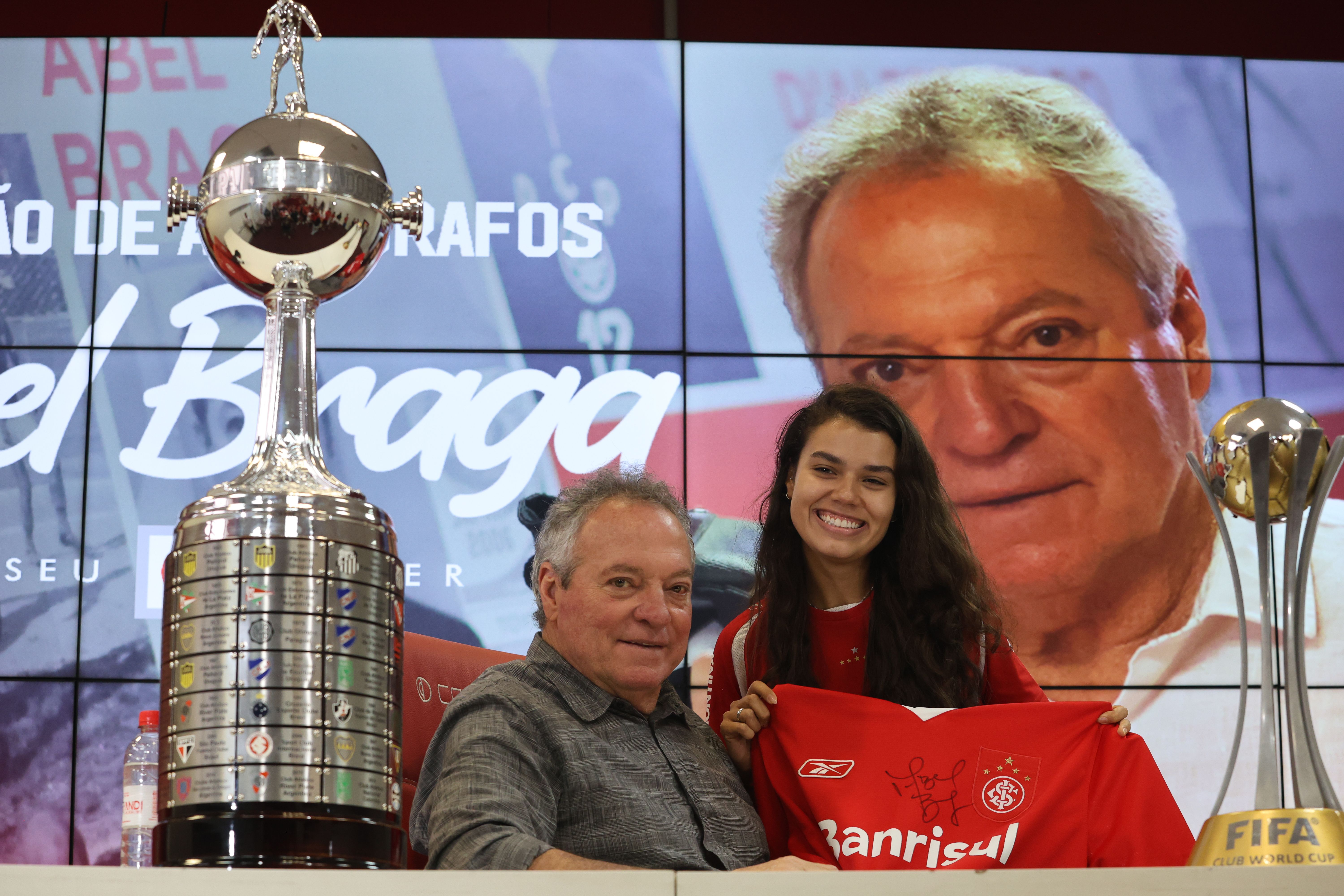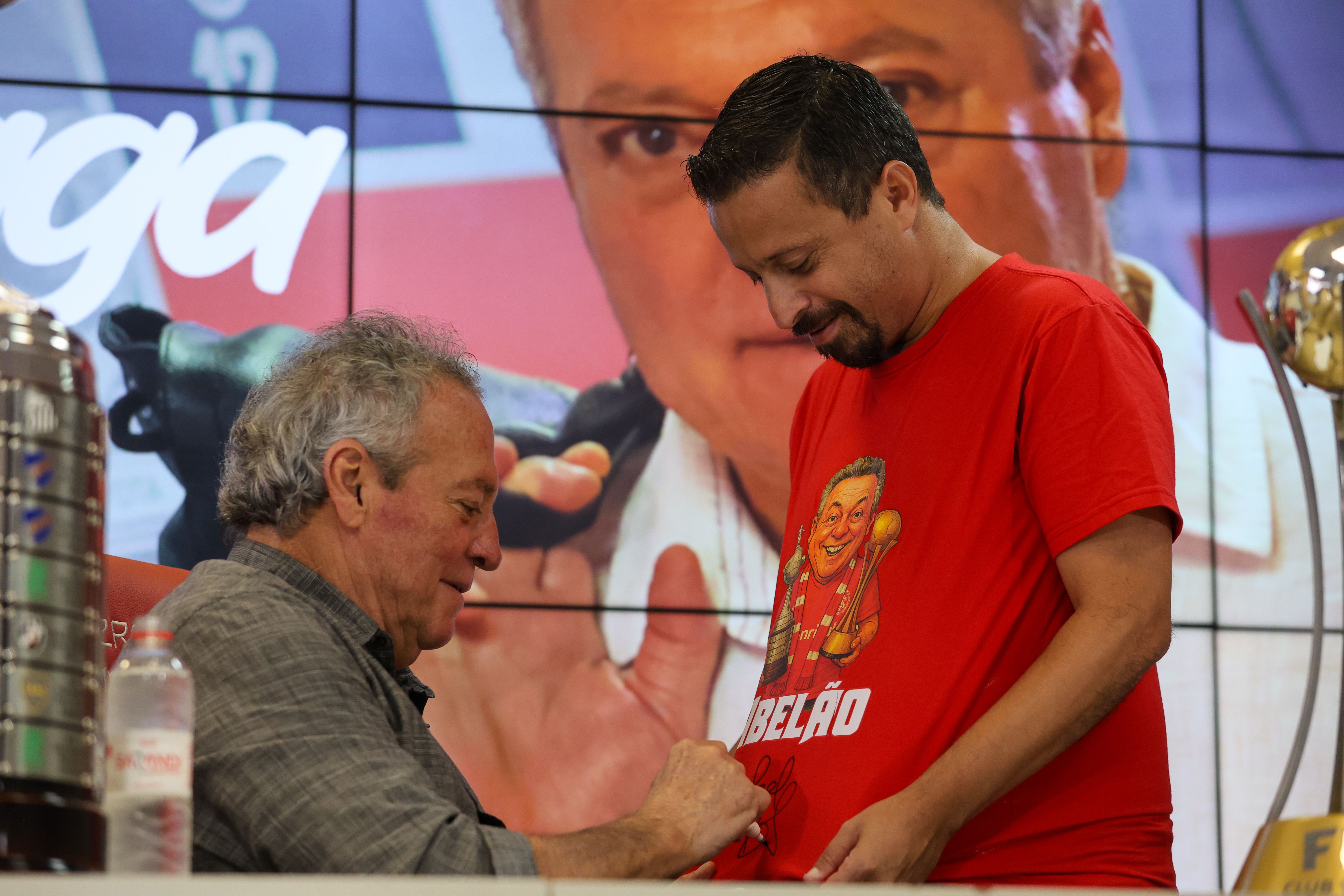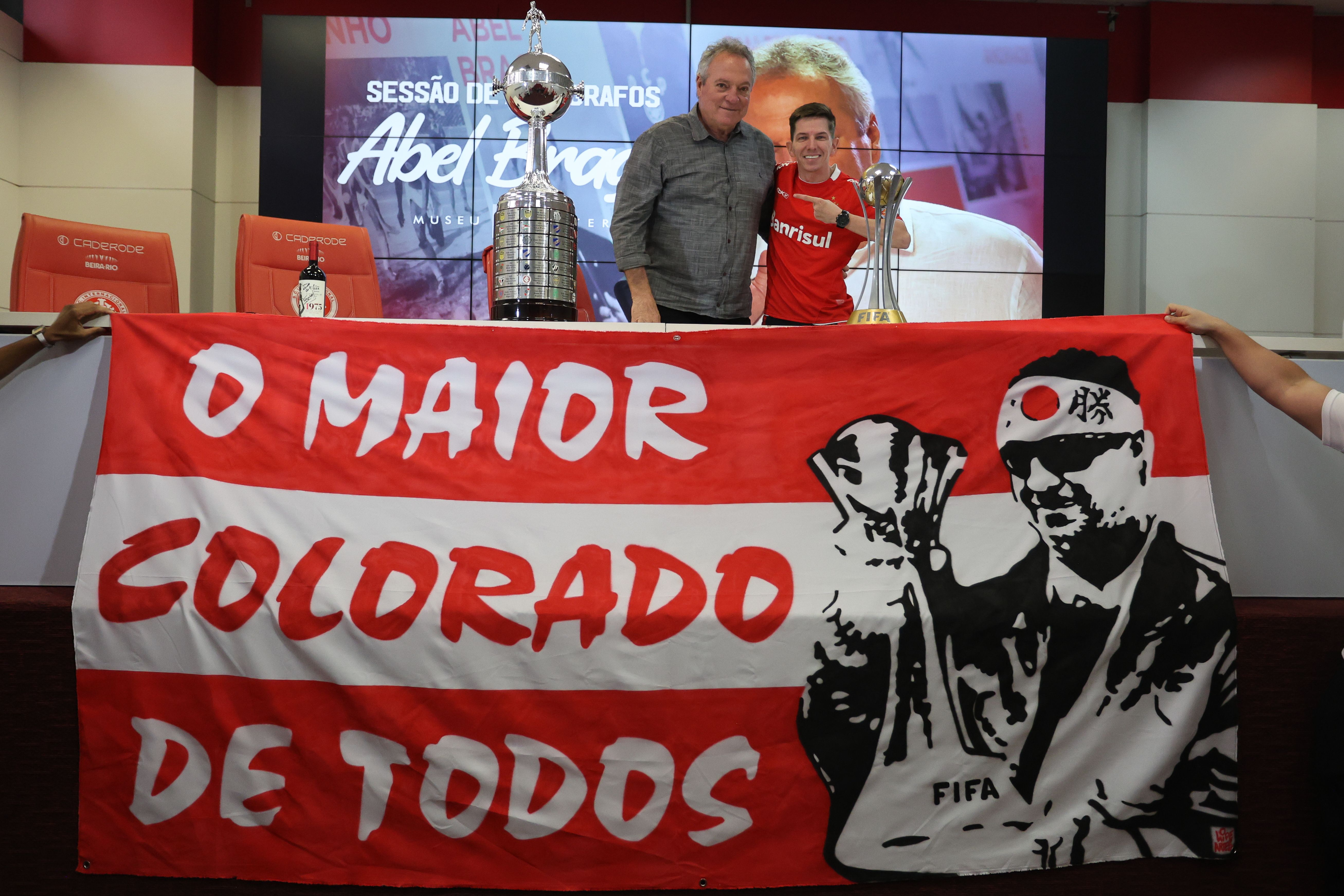O trajeto até a sala de imprensa teve clima de jogo, e ocorreu no embalo dos tradicionais 'Vamo, Vamo, Inter!' e 'Camisa Vermelha'. Depois, tão logo se depararam com o ídolo, os colorados e coloradas festejaram aos gritos de 'Uh! É Abelão!'. Sorridente, o Diretor Técnico agradeceu o carinho e convocou o público para fotos e autógrafos, provavelmente sem imaginar que também ele seria presentado ao longo da manhã. Entre as lembranças entregues para Abel Braga, destacaram-se uma camiseta personalizada por um torcedor com o desenho da placa da substituição feita pelo comandante na final do Mundial de 2006, promovendo a entrada de Adriano Gabiru no lugar de Fernandão, e uma garrafa do Vinho Don Elias Figueroa, lançado por outro gigante da história alvirrubra.