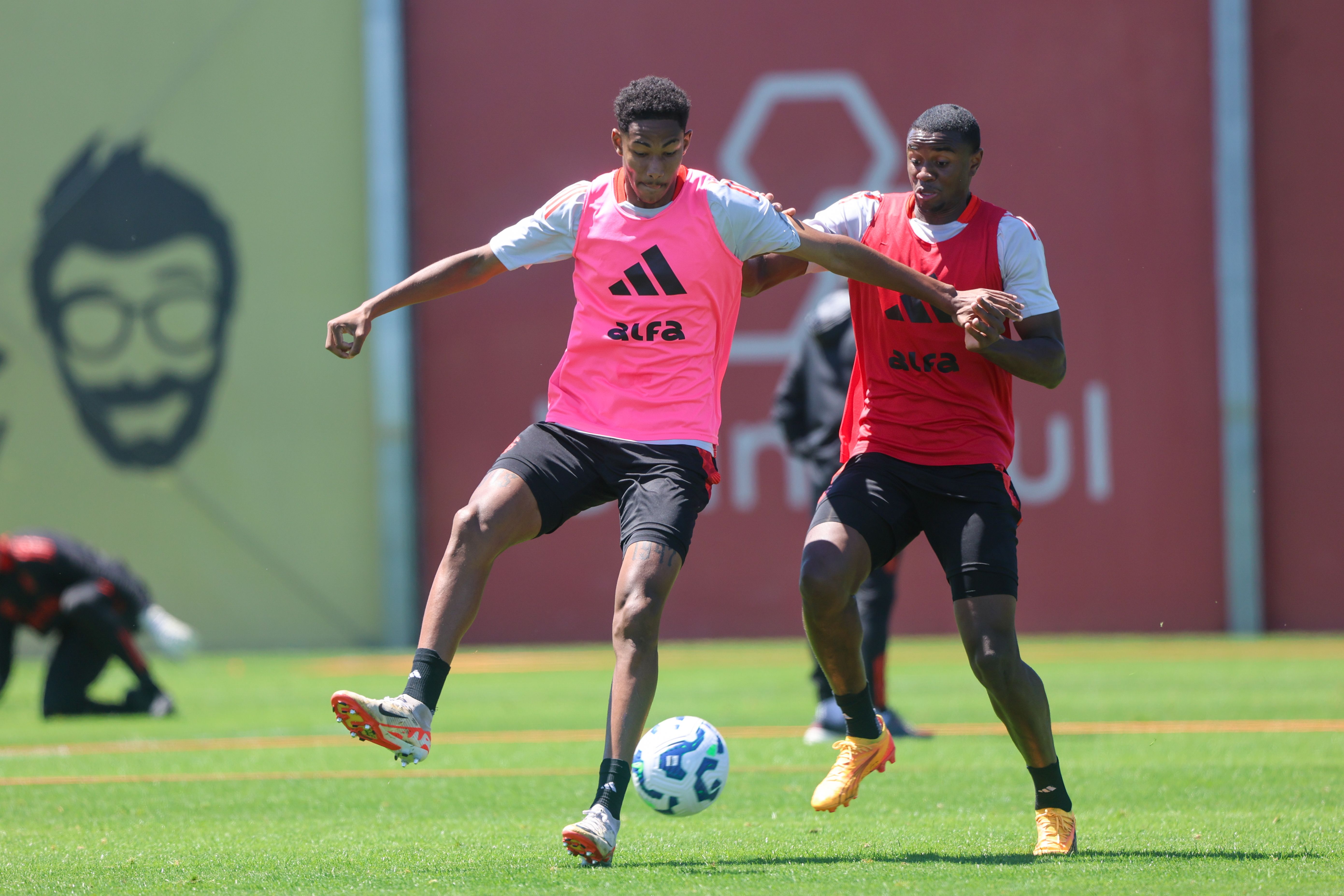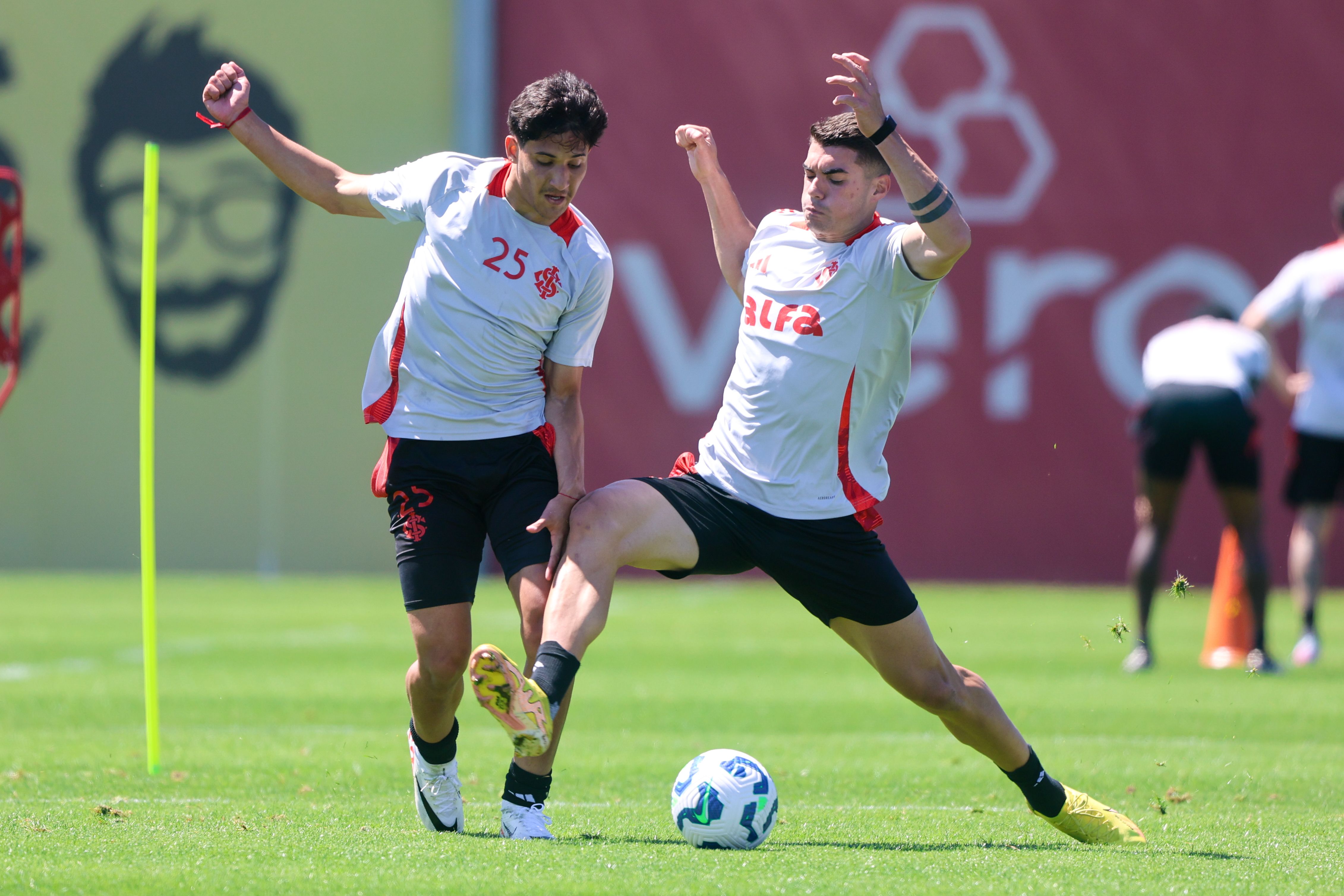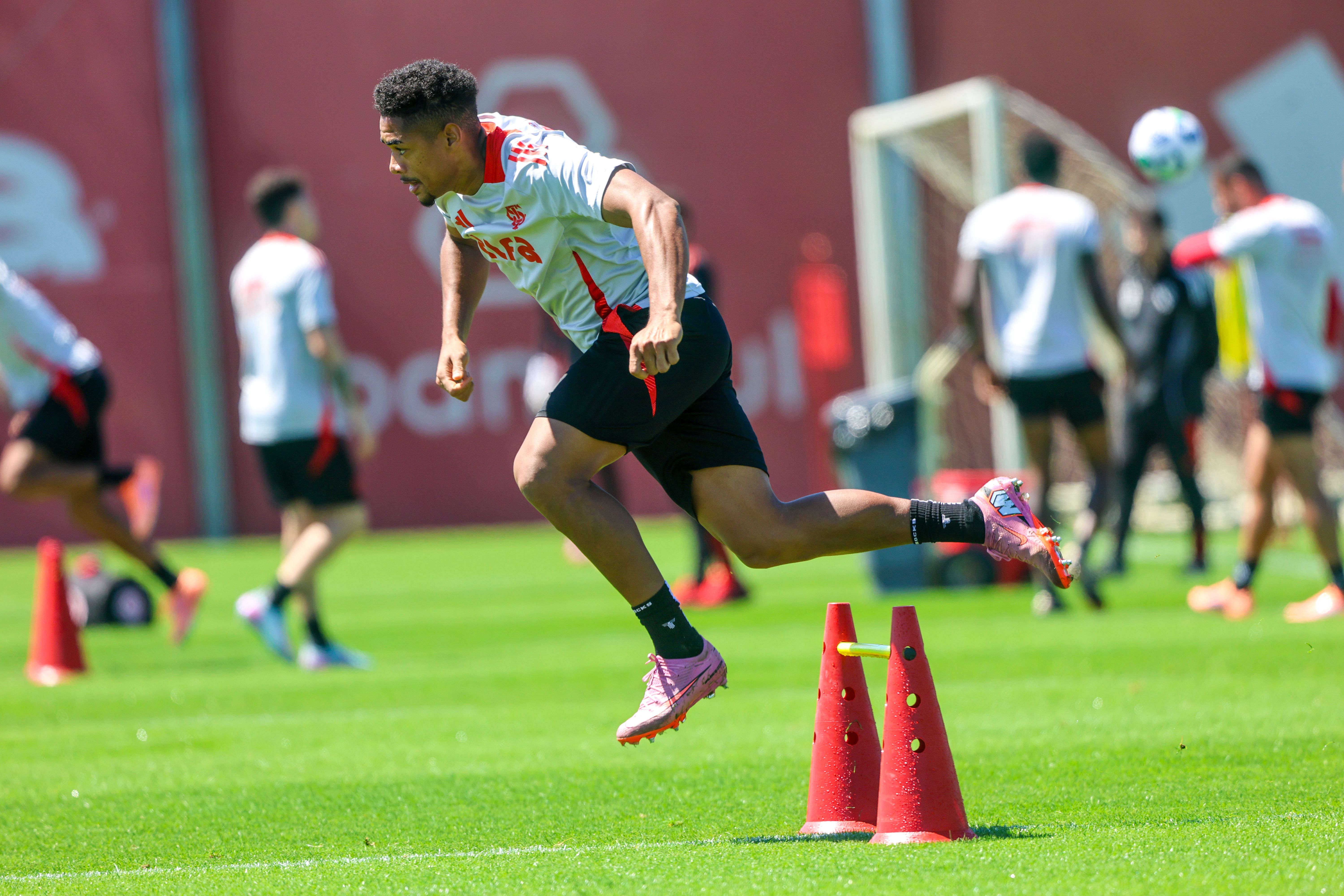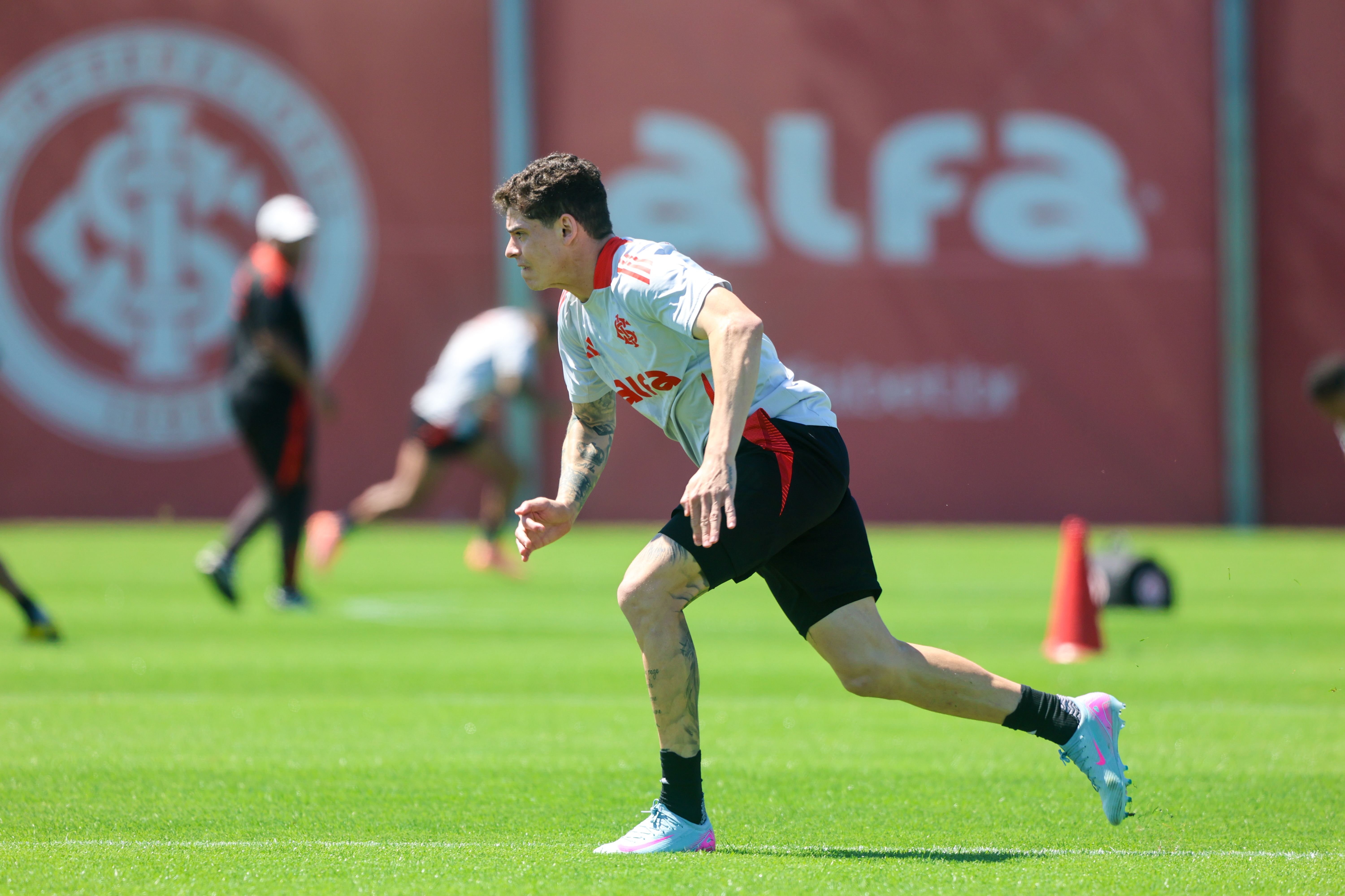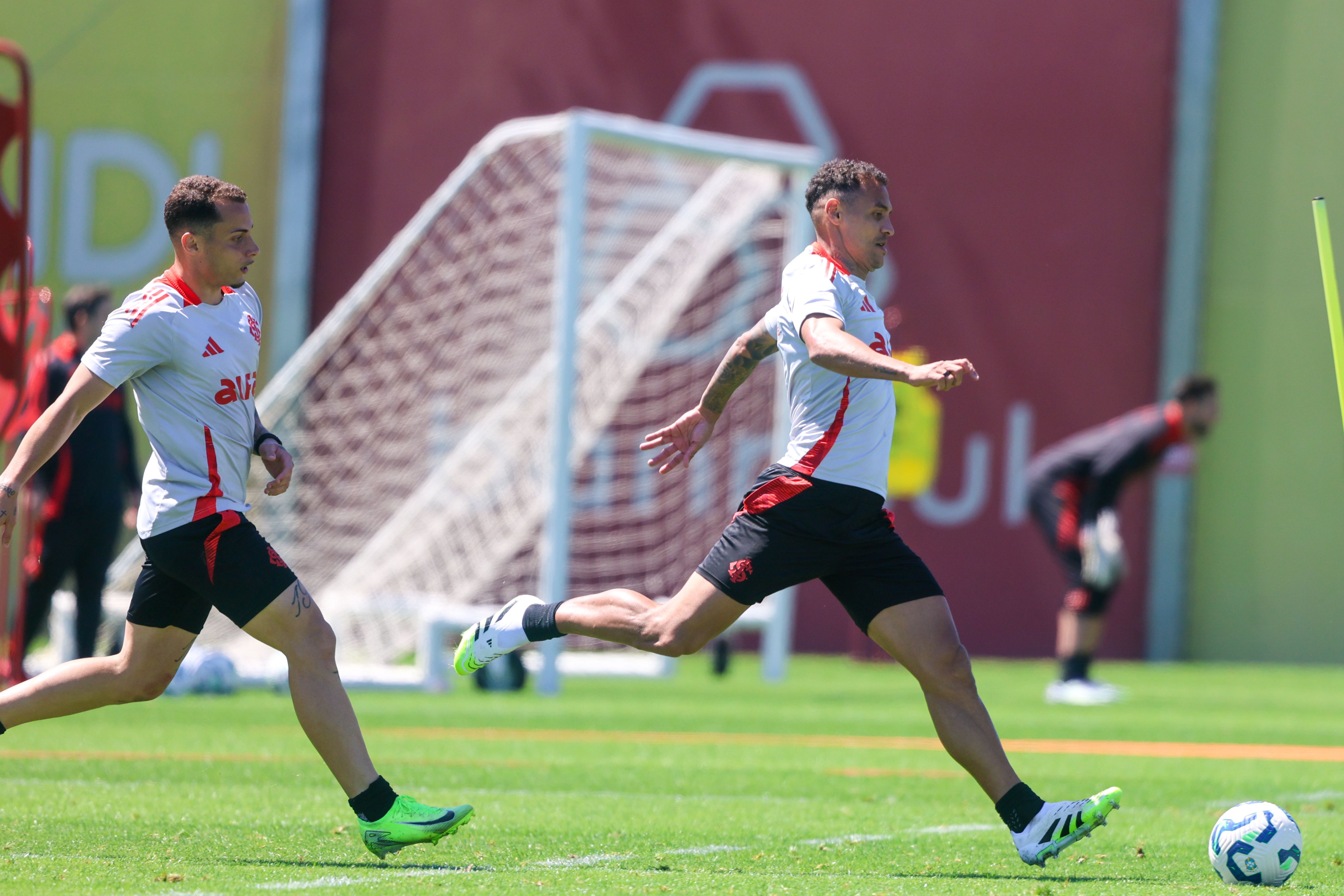O treinamento desta quarta iniciou na academia com exercícios físicos de força. Depois, no gramado, os jogadores realizaram atividades técnicas de troca de passes, pressão no adversário e minijogos em campo reduzido, exigindo muita intensidade de cada atleta.
