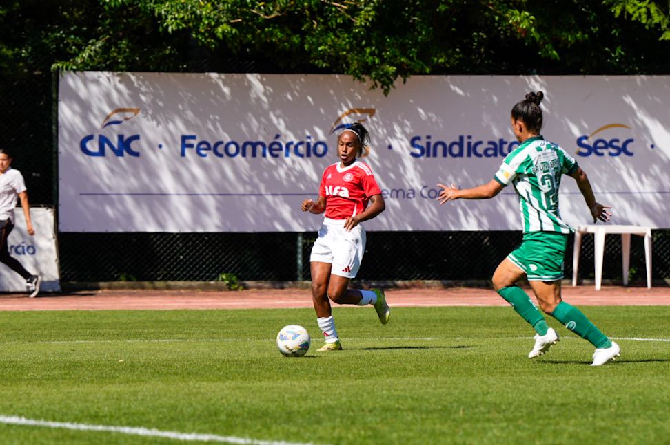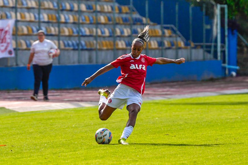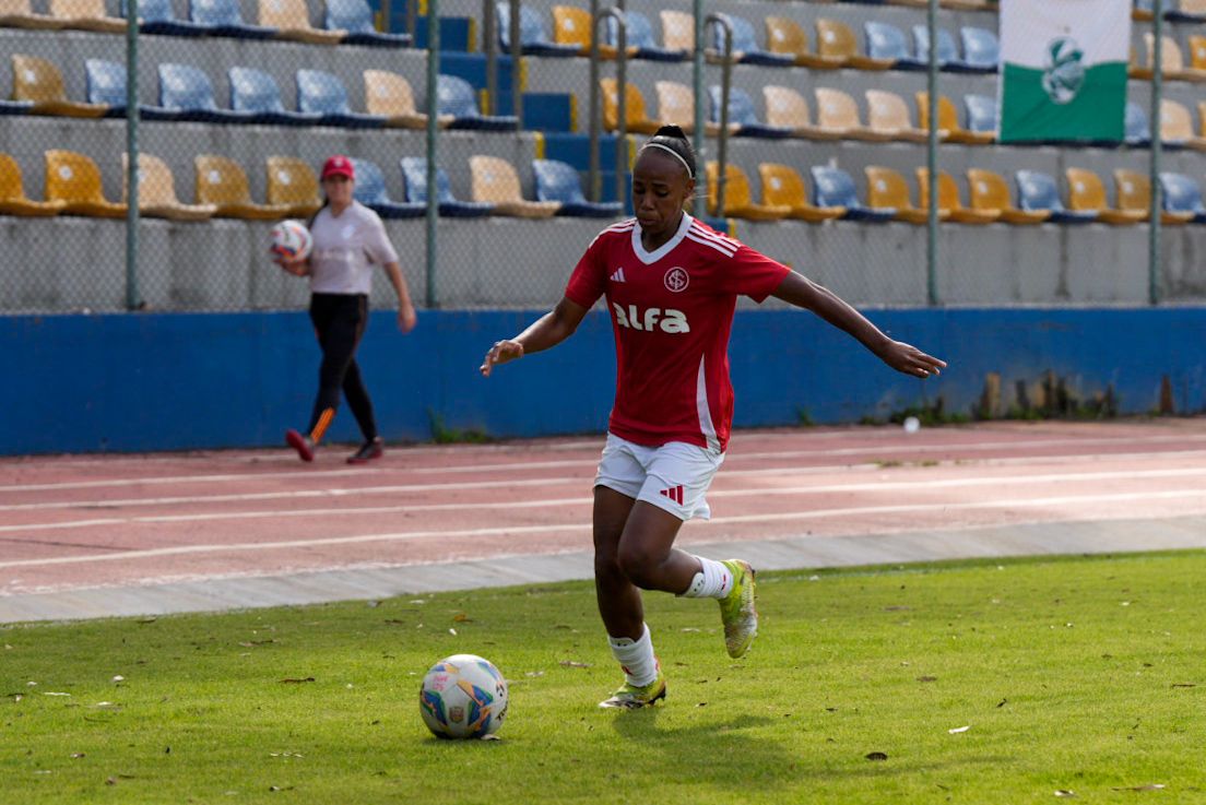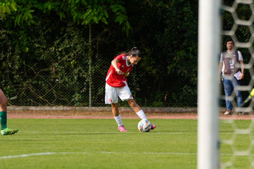 Ainda no primeiro tempo, o Inter criou as melhores oportunidades. Após uma jogada individual, Belén Aquino invadiu a área, driblou a defensora e foi derrubada: a arbitragem marcou pênalti. A própria camisa 11 bateu e converteu.