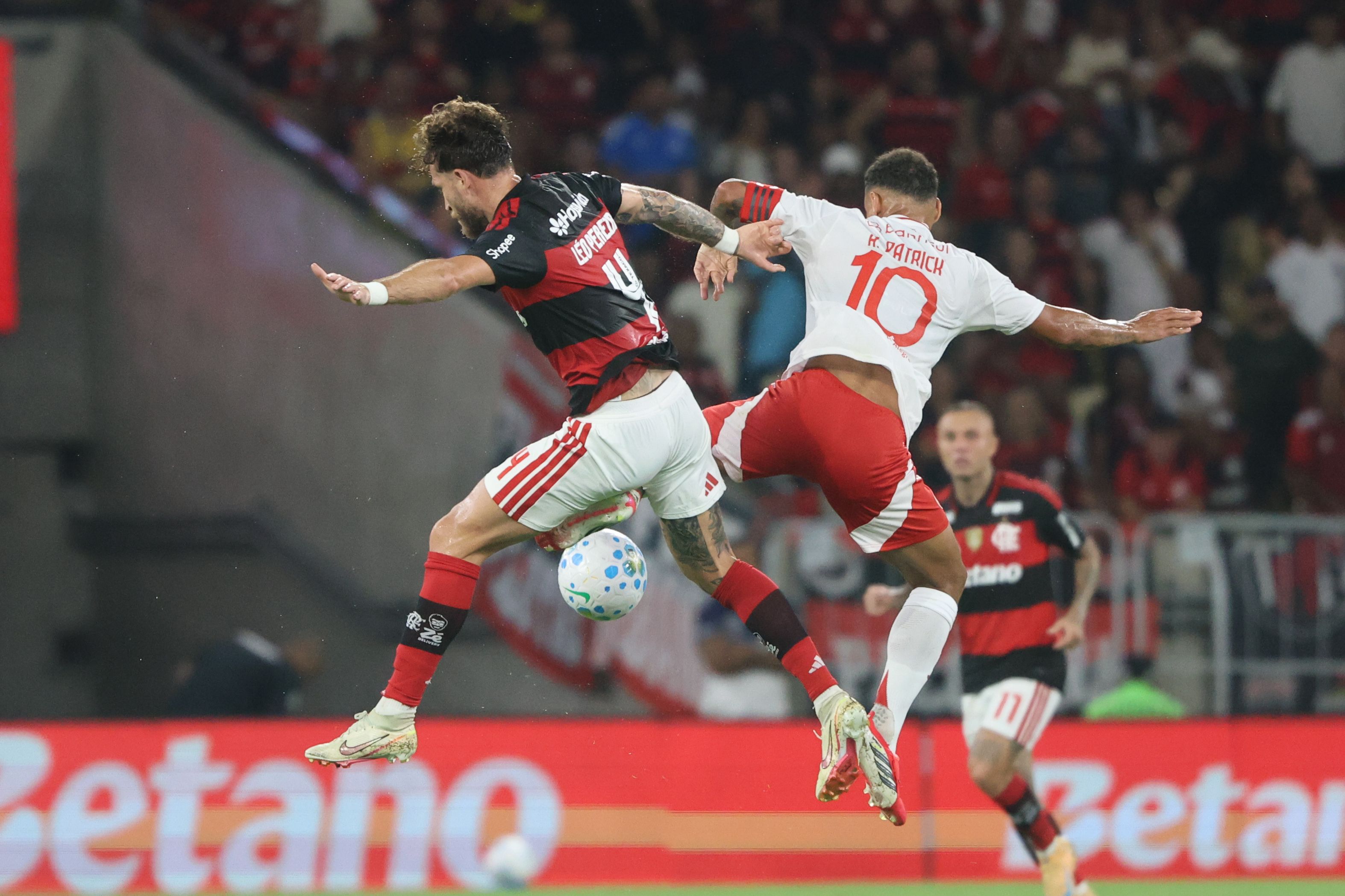 Indiferente ao mando de campo adversário, o Colorado apertou a saída de jogo rubro-negra desde os primeiros movimentos. Quando não conseguia forçar o erro da linha de defesa carioca, o time de Pezzolano apostava em faltas táticas para impedir qualquer aceleração do ataque rival, e a postura rendeu dois cartões amarelos - um para cada lado - nos cinco minutos que inauguraram o embate. Do lado do Flamengo, Paquetá foi o advertido. No Inter, Ronaldo ficou pendurado.