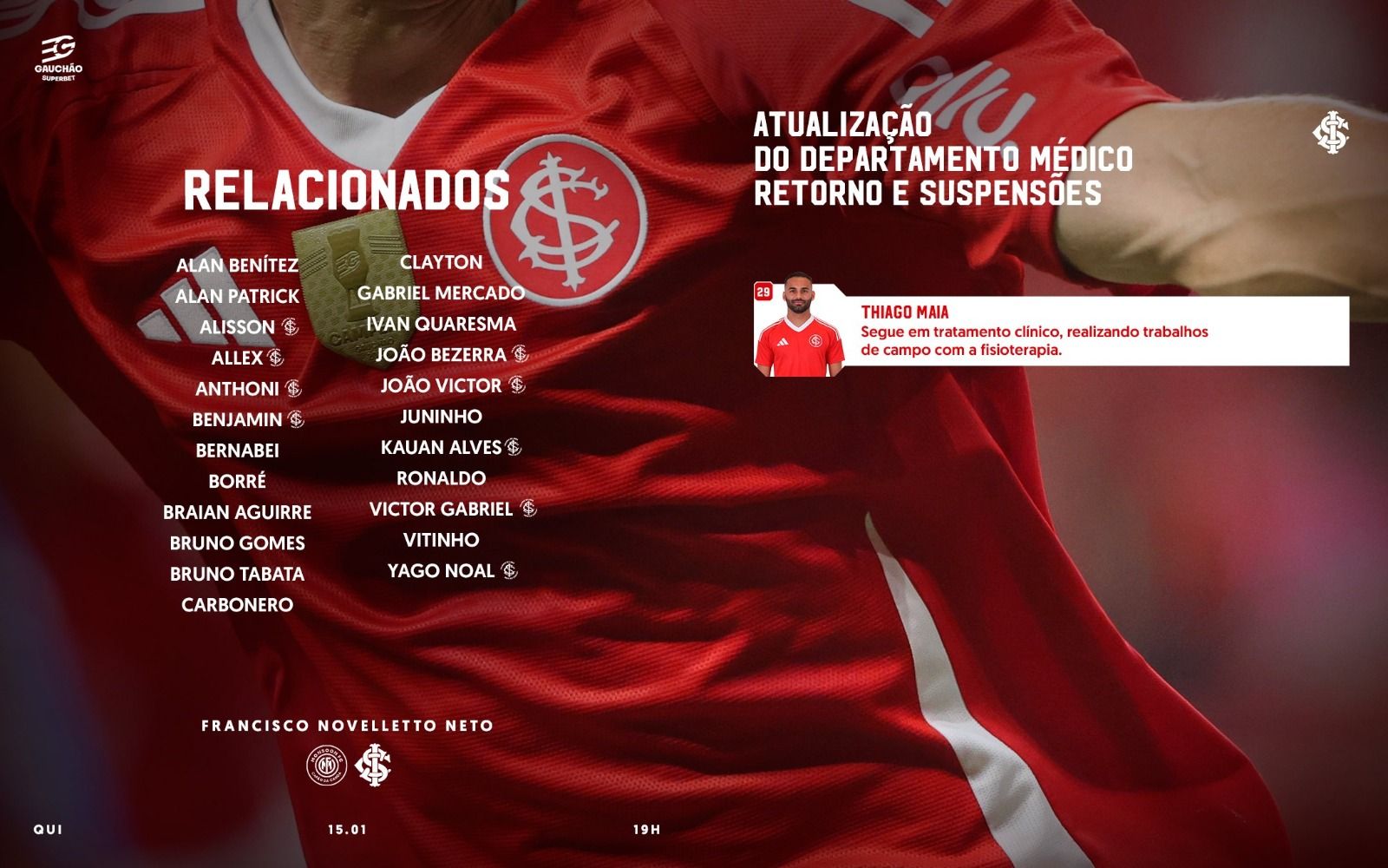 A nominata alvirrubra conta com nomes como Alan Patrick, Bernabei, Braian Aguirre, Bruno Tabata e Carbonero. Se junta aos nomes, o técnico Paulo Pezzolano na casamata. Confira abaixo a lista completa: